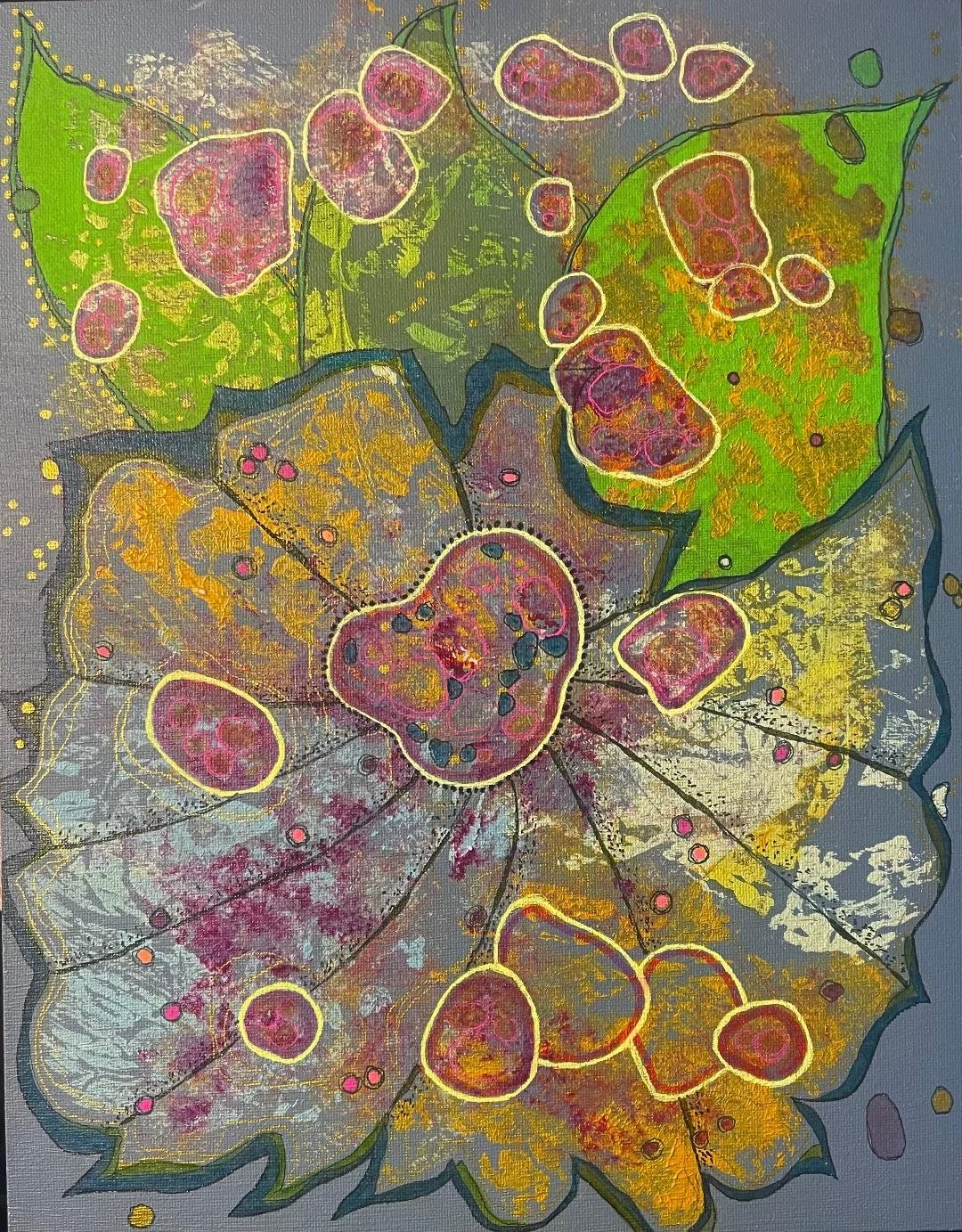 Cellular Healing -- When Grief Turns to Gold 16.5 X 15 (Archival Matting & Maple Wood Frame) $450